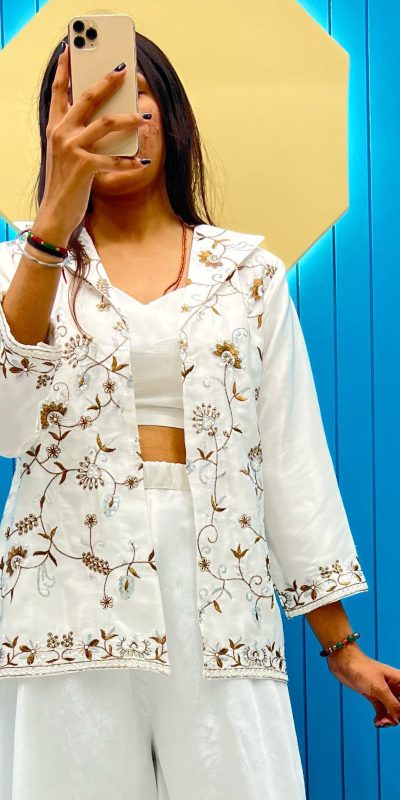 Nice White Color Fiona Silk Koti Blazer Embroidery Salwar Suit