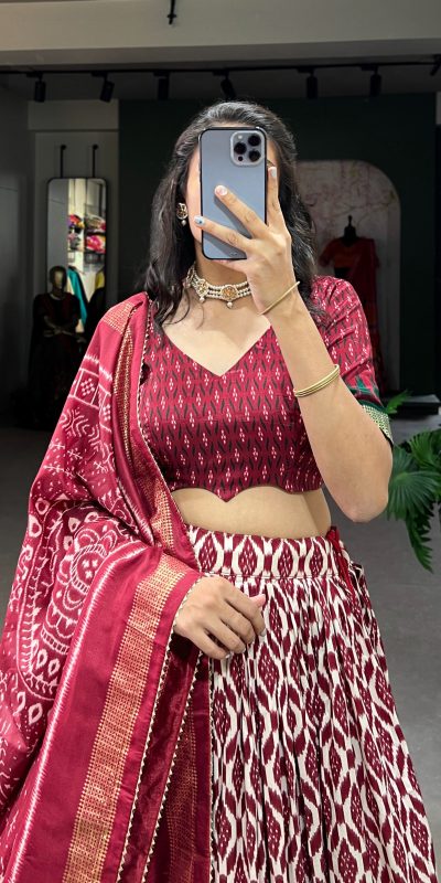 Lehenga Work : Ikkat Print With Foil Work