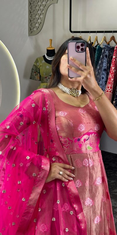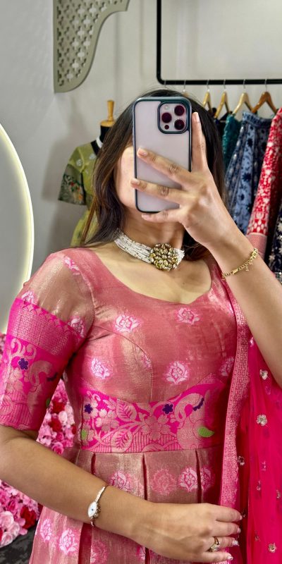 KD 8072 Pink Color Kota Silk Weaving Jacquard Gown Casual, Party, Wedding, Festive, Events Etc. Expected Delivery 4-6 Working Days @2099/- Only