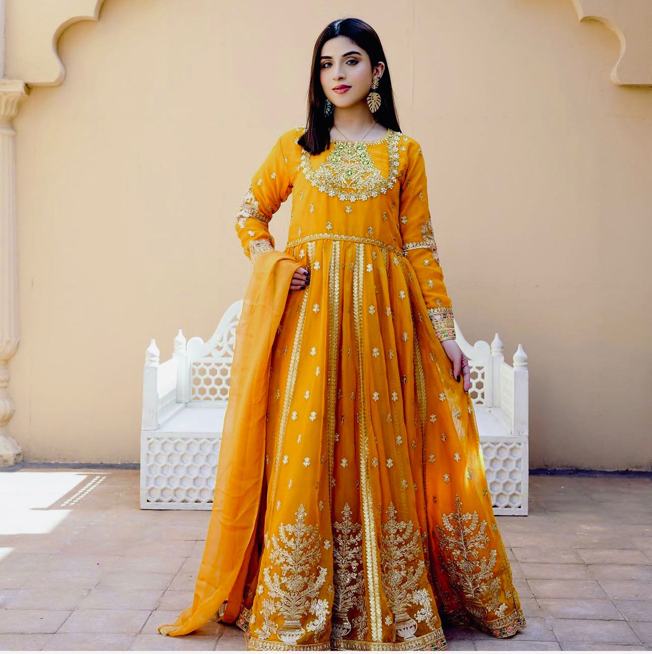 Dupatta Fabric : Pure Blooming Georgette With For Side Fency Zaler Less Work With Full-Stitch