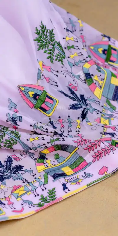 Lovely Pista And Pink Color Chinnon Embroidery Sequence Saree
