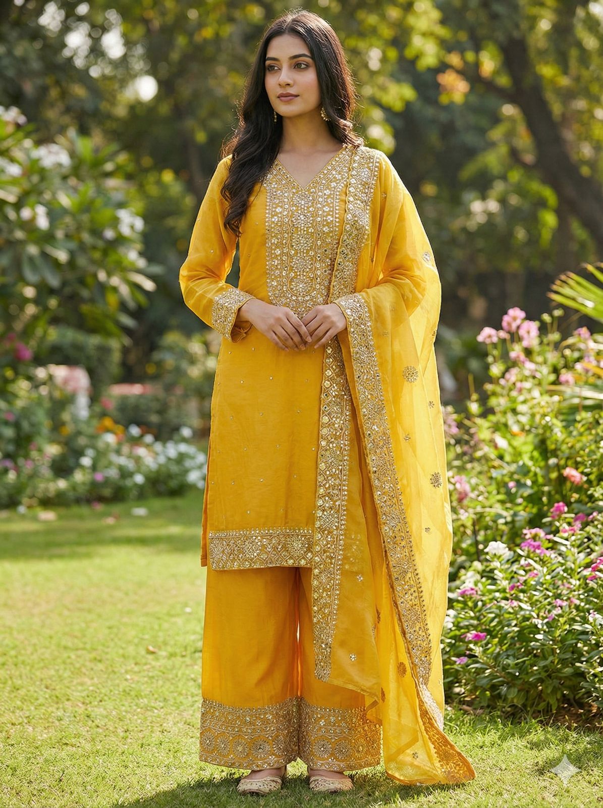 JF 040 Yellow Fendy Silk Salwar Suitwith Embroidery Work & Lace Work. Now at just ₹2049. Delivery 4-6 Working Days. Shop now. | Casual Suits, Jump Suits, Creative suits, Designer Suits, Palazzo Suits, Party Wear Suits, Patiala Suits, Salwar suit, Straight Suits