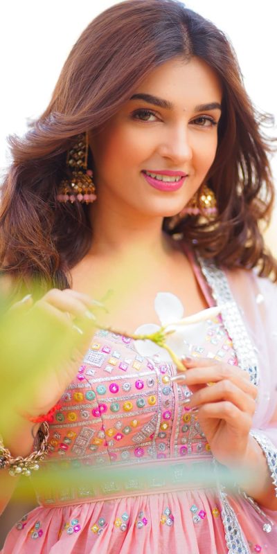 “The salwar suit’s anarkali silhouette is gracefully designed. It adds a sense of drama and elegance to the overall ensemble.”