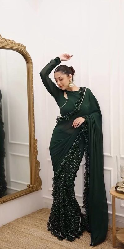 KD 520 Black Color Faux Georgette Digital Print With Ruffle And Fancy Lace Saree Casual, Wedding, Festive, Events . Expected Delivery  4-6 Working Days @2299/- only