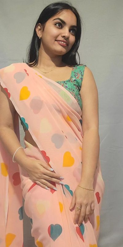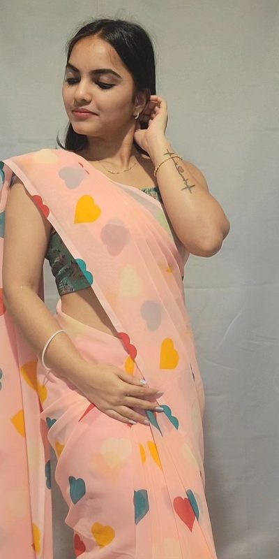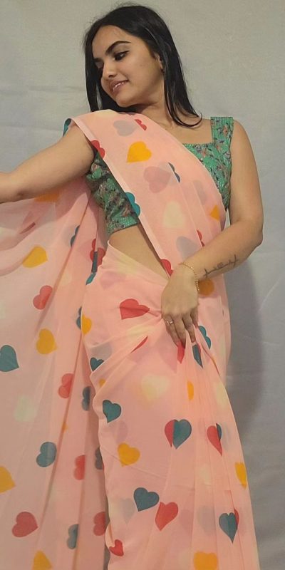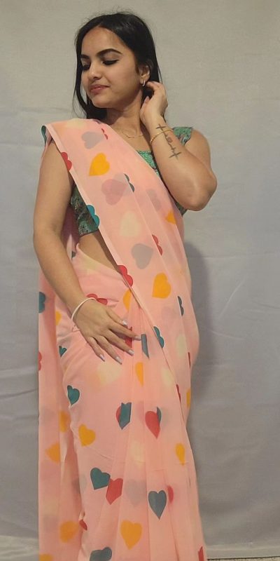 SC 215 Peach Color Soft Georgette Silk Digital Print Heart Design Ready To Wear Saree Casual, Wedding, Festive, Events . Expected Delivery 4-6 Working Days @1499/- only