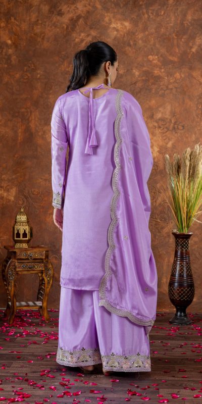Amazing Purple Color Chinon Silk Embroidery 3mm Sequence Coding Dori Work Salwar Suit - Image 3