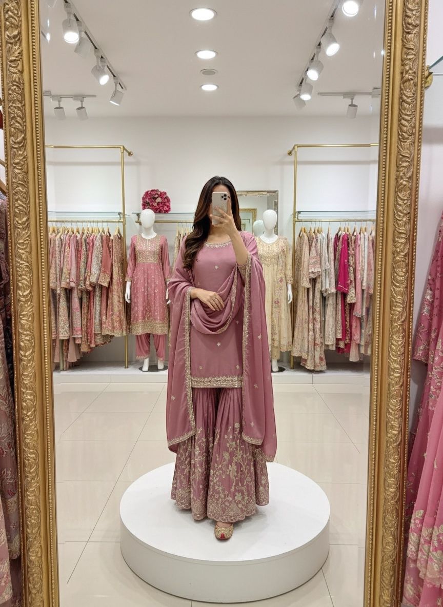 Sharara Fabrics :Pure Chinon Silk With 5 mm Sequence Embroidery Work With Elastic Rubber