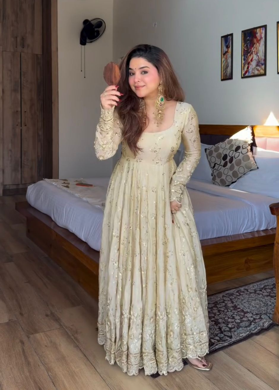 Work : Embroidery 5 mm Sequences Work With Ravet-Moti With Full-Sleeves With (*Attached Latkan-Dori)