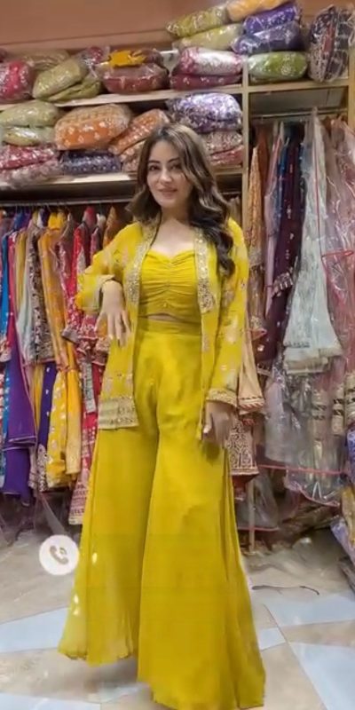 Fabrics Blouse Fabric : Georgette Sequence Embroidery Work On Front pleats On Front Side Inner : Micro Height: 14”inch Size : Free Size Semi Stitched Palazzo Fabric : georgette (Free Size) Height : 38”inch Koti Fabric : Georgette Sequence Embroidery Work Height :⁠ 31”inch