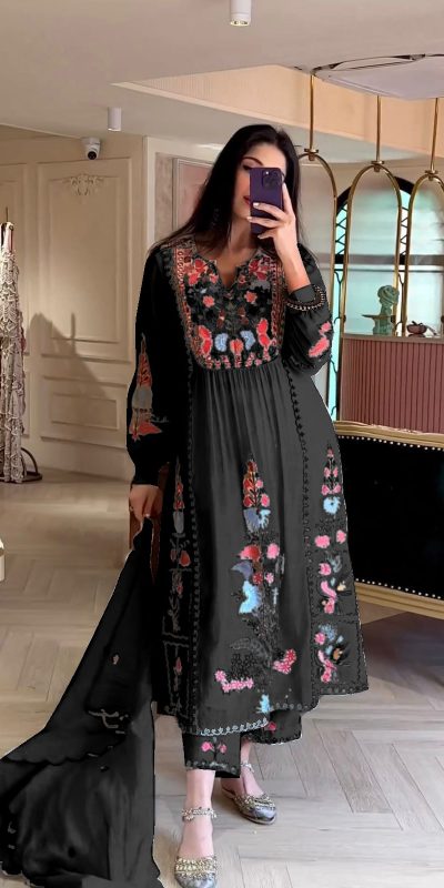 AD118 Black Color Georgette Embroidery Work Salwar Suit Casual, Wedding, Festive, Events Etc. Expected Delivery 4-6 Working Days @1950/-