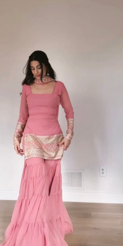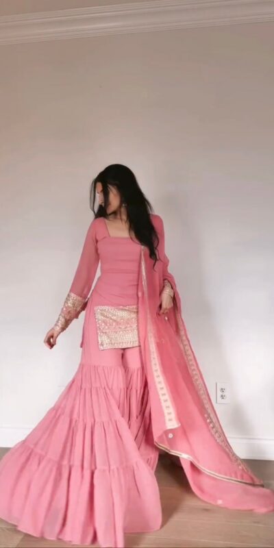 Baby Pink Faux Thread Work Georgette Salwar Suit