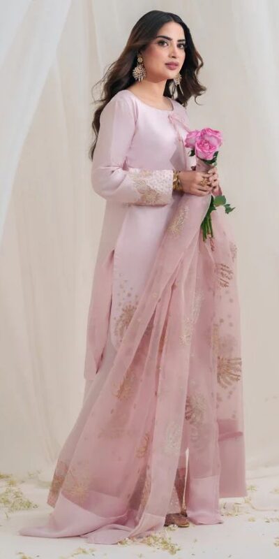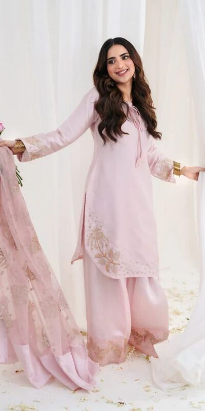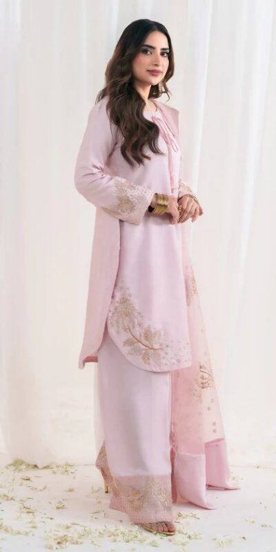 Baby Pink Natural Crep Silk Embroidery Salwar Suit