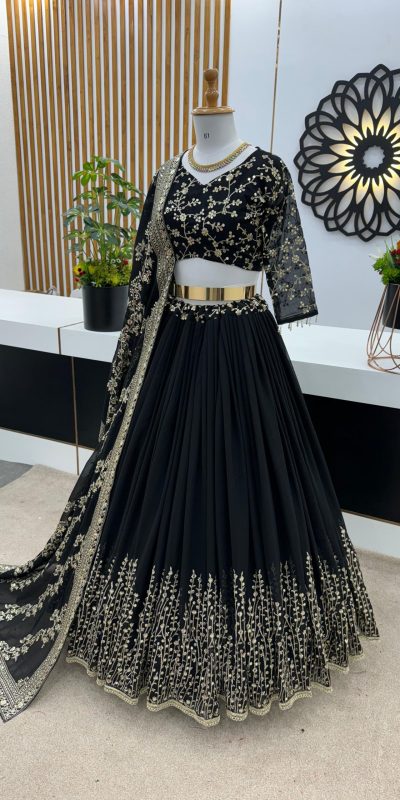 ZF 358 Black Color Faux Georgette With Heavy Embroidery Sequence Work Lehenga Choli Wedding, Party, Events Etc. Expected Delivery 4-6 Working Days 2099/-