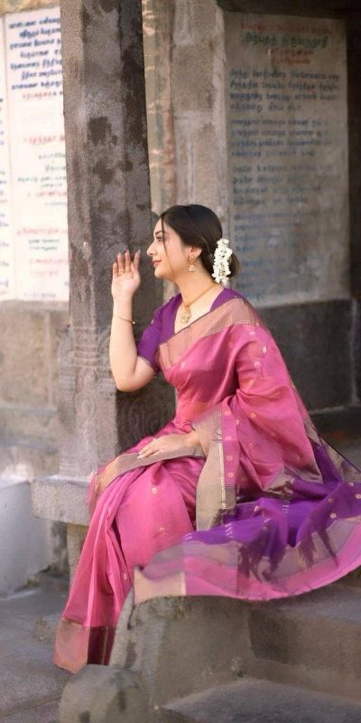 I’m very impressed with the quality of the saree I bought. It’s lightweight and drapes beautifully.
