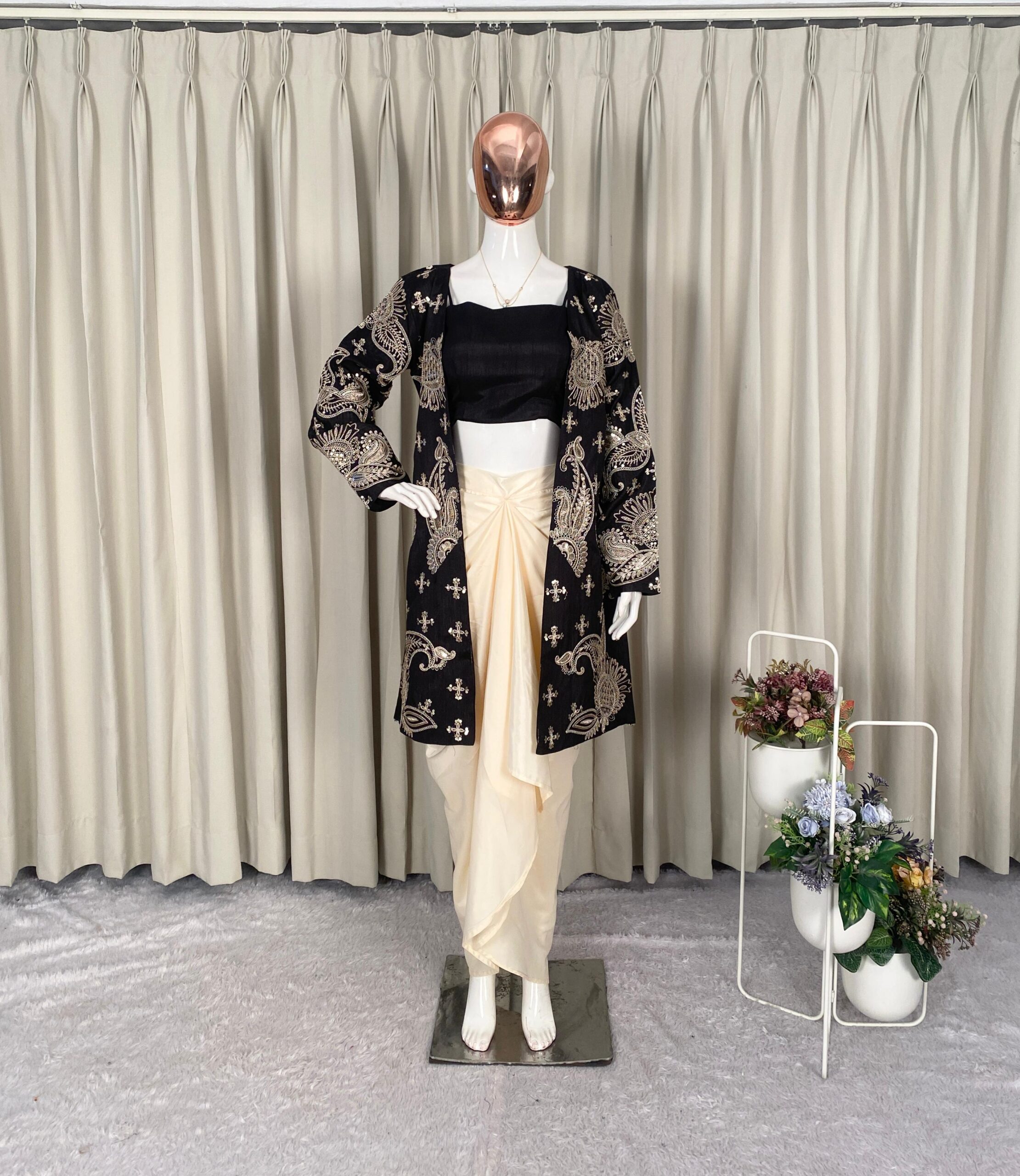 Black French Crape Embroidery Work Dhoti Suit