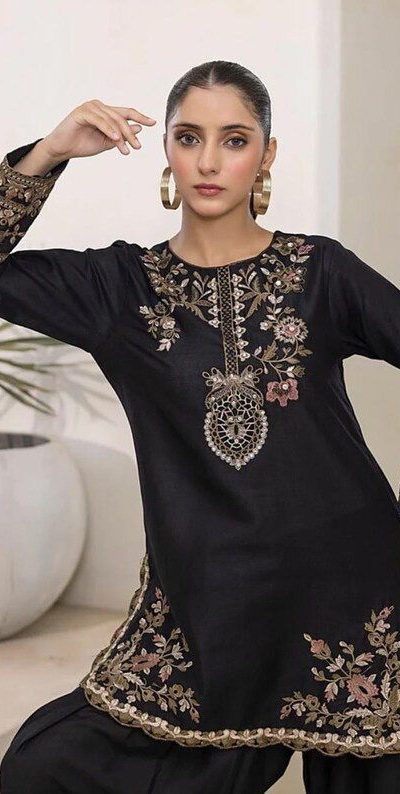Top Fabric :- Havy Natural crep Work :- Heavy Embroidery work multi colour tread With Back side work Hend  diamonds work Inner :- butter creap Size :-M-38,L-40,XL-42,XXL-44 *Length : 33-34 inch Bottom Fabric :- Havy natural crep with embroidery work Inner :-* butter creap Length : 40-41 inch