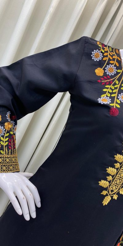 Black Roman Silk With Embroidery Salwar Suit