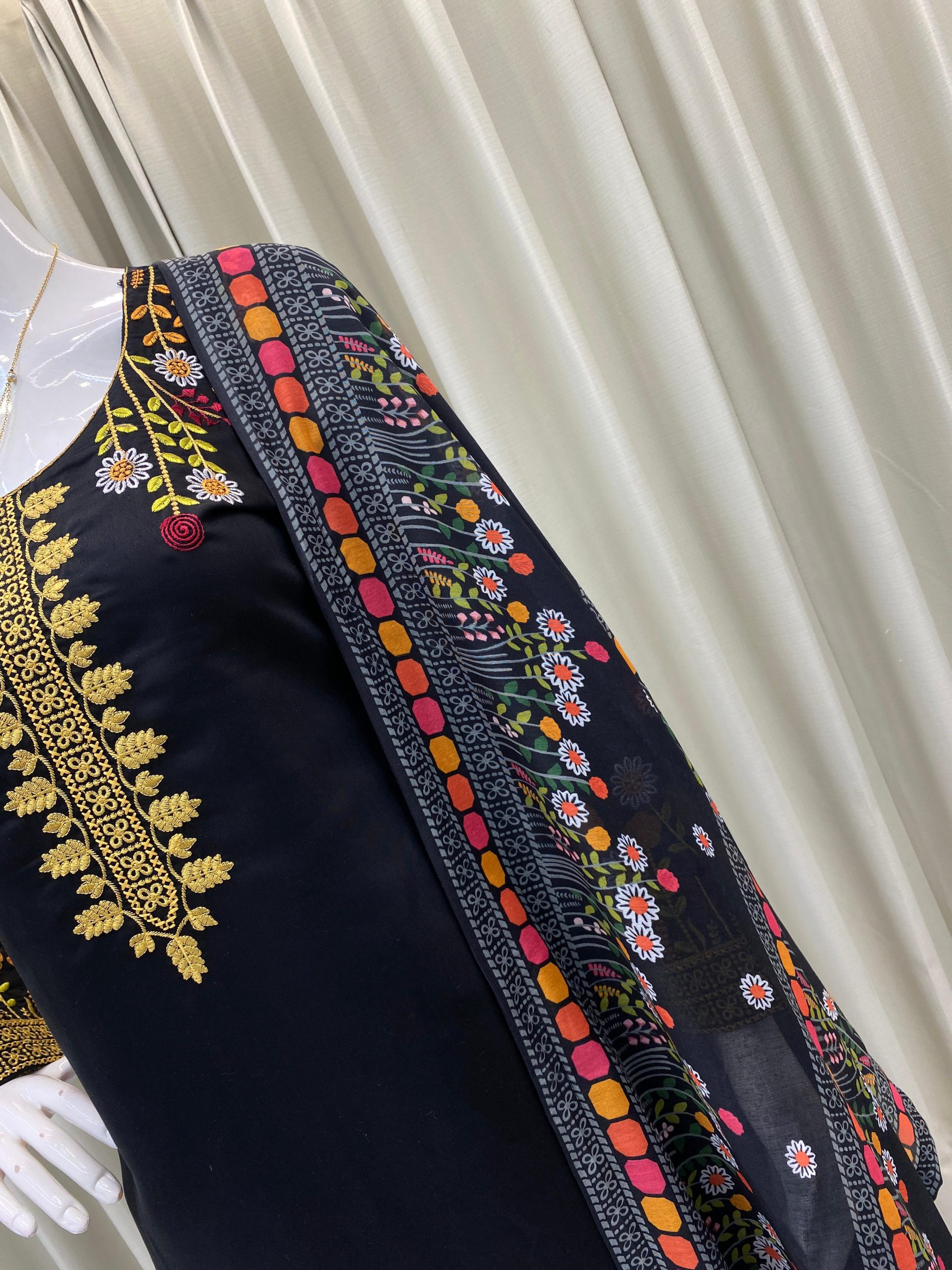 “The salwar suit’s dupatta is generously sized, allowing for creative draping styles. It adds versatility to the overall ensemble.”