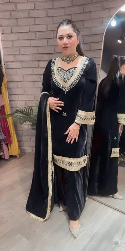 Black Velvet Mirror Embroidery Work Salwar Suit
