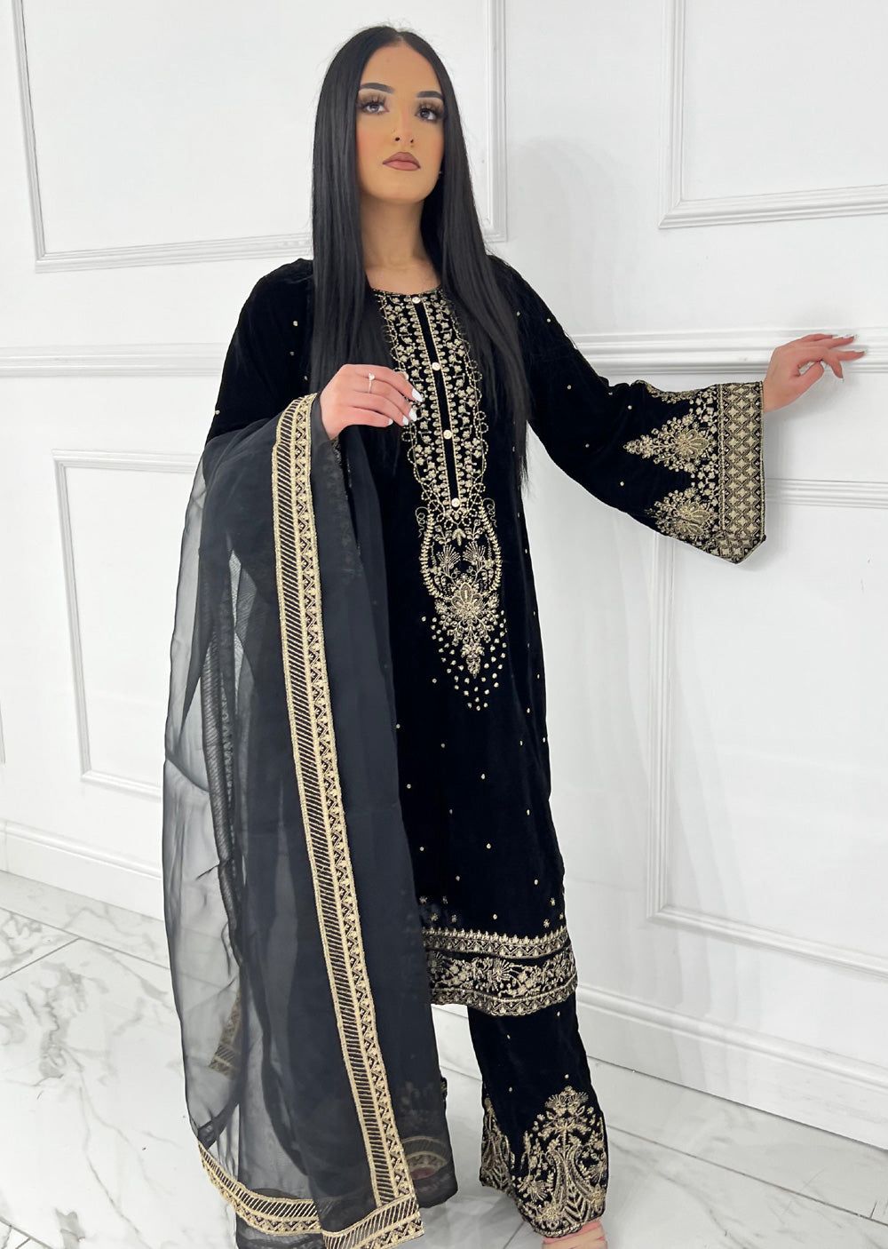 25 reviews for Black Viscose Velvet Sequence Lace Work Salwar Suit