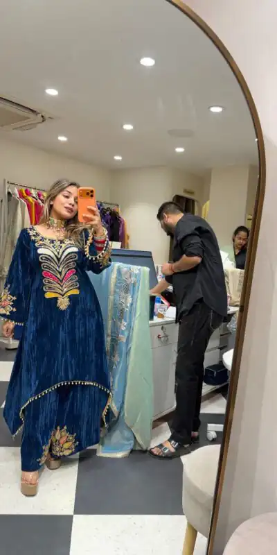 Blue 9000 Velvet Lace Embroidery Work Salwar Suit