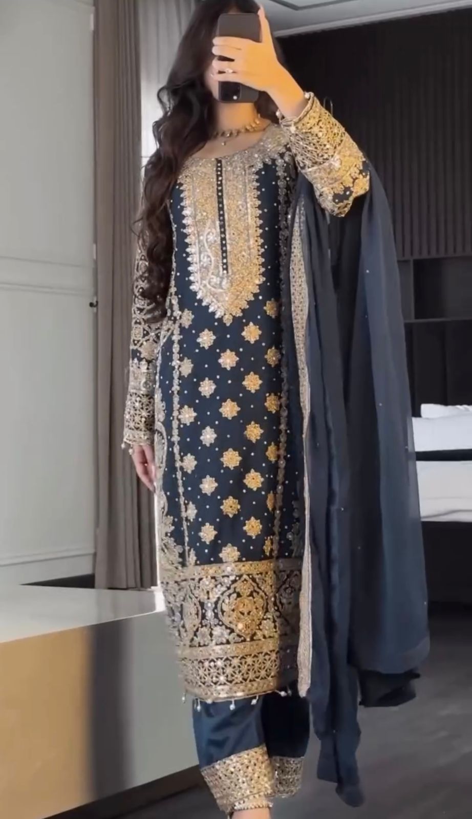 Top Fabric : Faux Georgette With Heavy Embroidery Sequence Work And Full Sleeve With Revet Moti