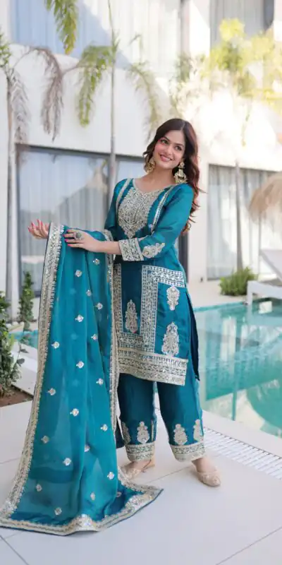 This salwar suit is stunning! The intricate designs and comfortable fabric make it perfect for weddings and special occasions. Highly recommend!