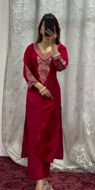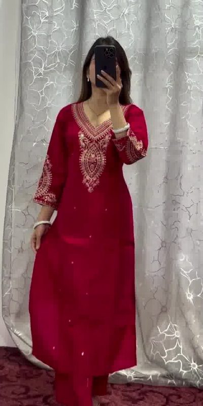 | Fabrics | Top Fabrics : Heavy pure chinon With embroidery coding dori work Work : Embroidery coding dori work Salwar Suit Inner : Butter Crepe Height : 44-46 inches Top Size : Free Size Sami StitchesPant Fabrics :Heavy pure chinon silk Length : 39-40 fully stitchedPant Size : Free Size Full stitched Height : 40 inch Dupatta : Heavy pure chinon silk with embroidered sequence border Lace Work 2.2 Mtr |