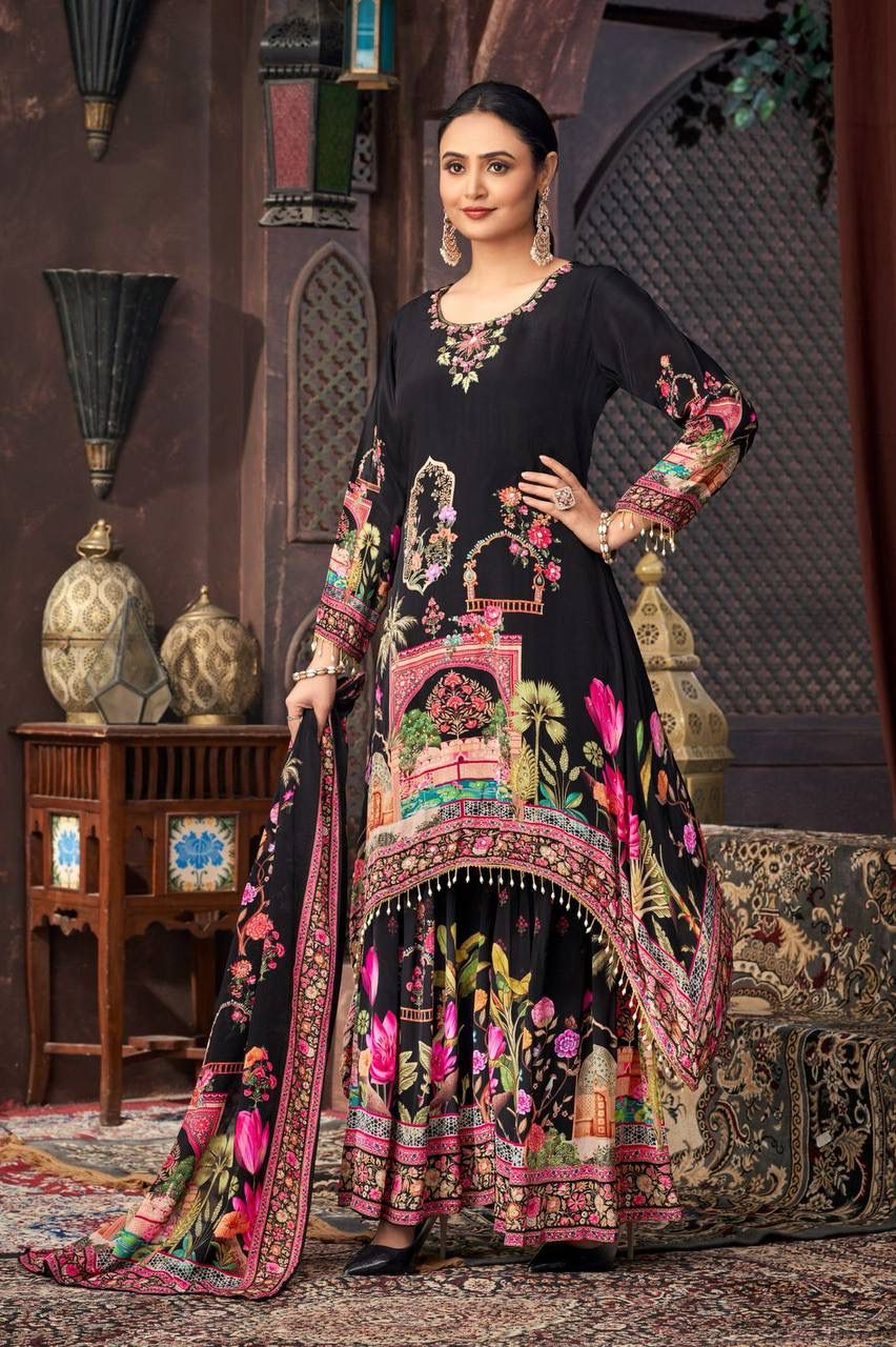 ST 217 Black Georgette Salwar Suit Perfect for Wedding, Party, Lohri, Pooja, Cultural Events – . Get it for ₹1999. Delivery 4-6 Working Days. Shop n | Casual Suits, Jump Suits, Creative suits, Designer Suits, Palazzo Suits, Party Wear Suits, Patiala Suits, Salwar suit, Straight Suits