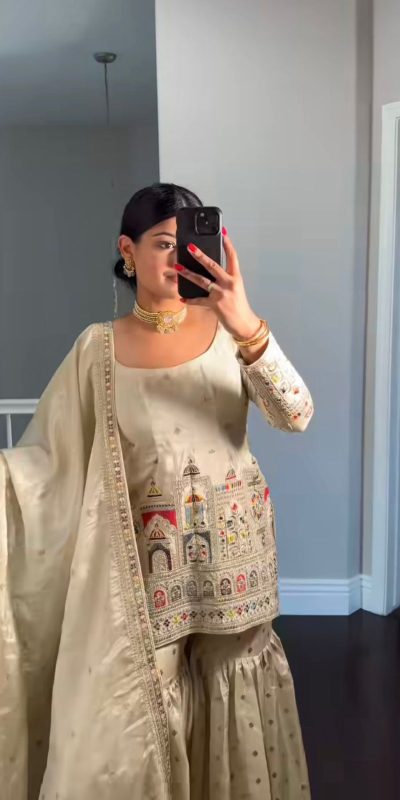 NSR 811 Cream Color Pure Chinnon Silk Embroidery Coding Salwar Suit Casual, Party Festive, Events Etc. Expected Delivery 4-6 Working Days @2149/-