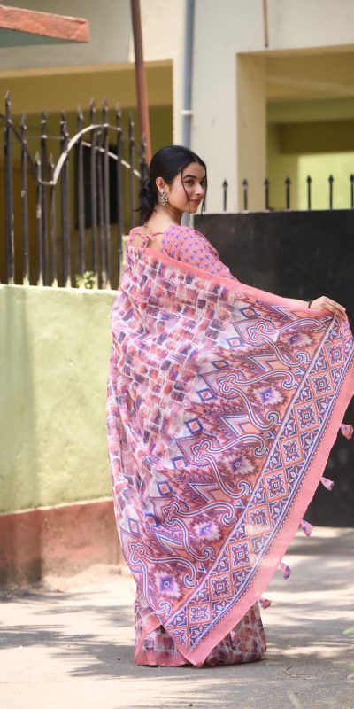 | Fabrics | Saree : Heavy linen Work : Beautiful Digital Print Blouse :Running |