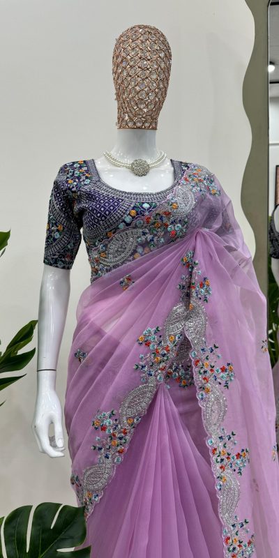 KD 499 Violet Color Organza Silk Thread Sequence Work Saree Casual, Party Wear, Wedding, Events Etc. Expected Delivery 4-6 Working Days @2499/-