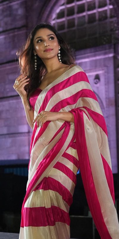 Consummate Pink & Golden Color Satin Silk Lining Design Saree