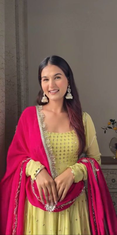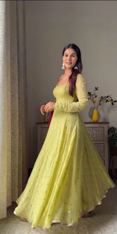 Fabrics Top Fabric : Foix georgette Inner : Micro Work. : thread with 9mm Sequence Stich. : M(38),XL(42), XXL(44) with 3xl margin) Height :- 51inch Pent Fabric :- Micro cotton Stich :- Full stich Free Size Semi Stitched Dupatta Fabric : Foix Georgette Work : thread with foreside lace border Length : 2.2 meter