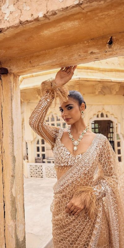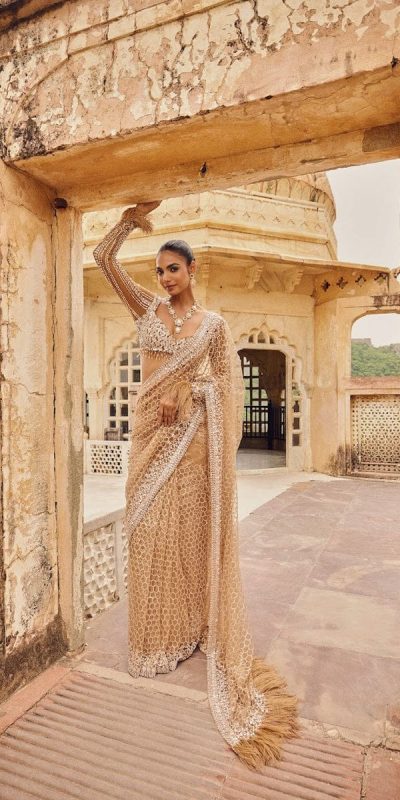 Blouse Fabric : Net With Heavy Embroidery Front & Back Blouse With Sleeves