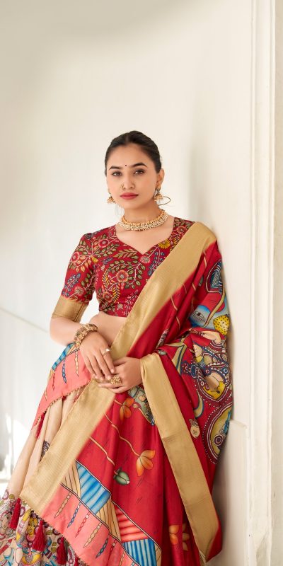 Dupatta work : Kalamkari Print With Weaving Border Also Comes With Both Side Tassels