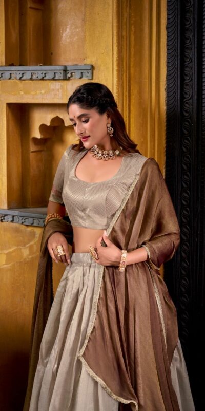 Cream Dupion Silk Lace Zari Work Lehenga Choli