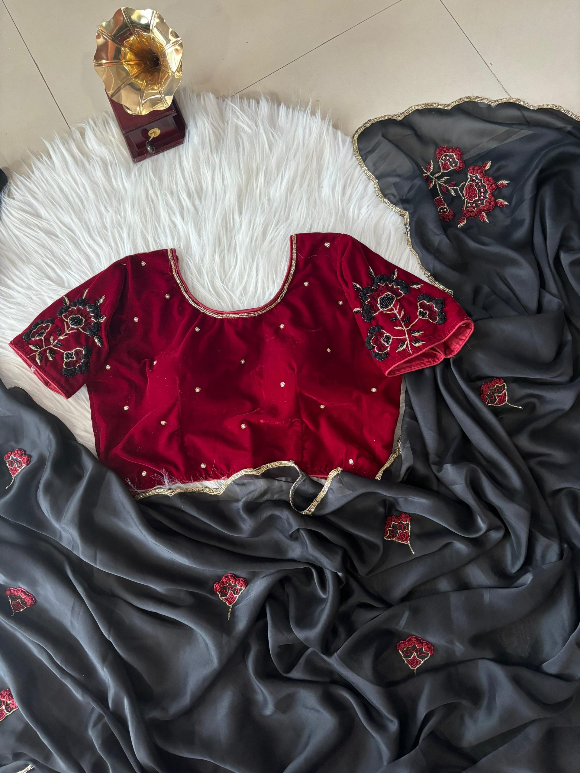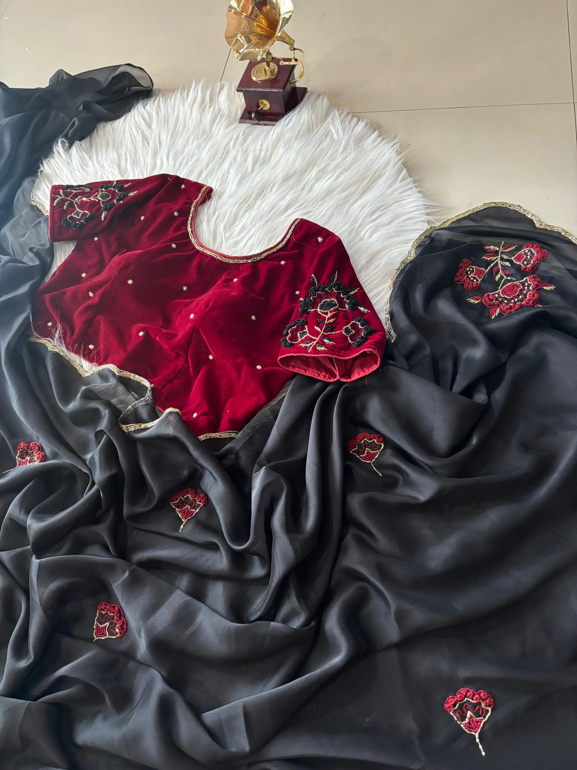 4. Perfect for festive gatherings, this saree combines traditional charm with modern style. The fabric flows effortlessly and feels light and airy throughout long functions.