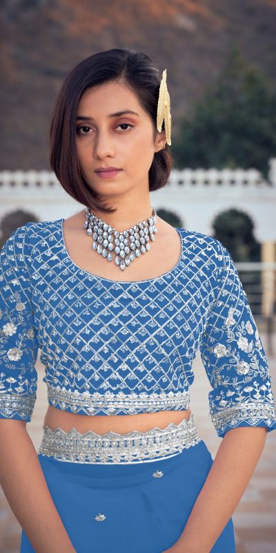 KT 244 Blue Color Bright Organza Silk Sequence Work Saree Blouse: Bangalore Silk Casual, Party Wear, Wedding   Expected Delivery 4-6 Working Days@1899/-