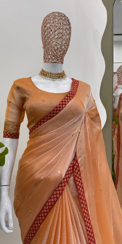 KD 501 Coral Color Burberry Silk Thread Sequence Saree Casual, Party Wear, Wedding, Events Etc. Expected Delivery 4-6 Working Days @1899/-