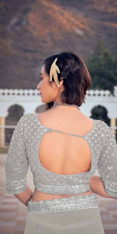 KT 244 Silver Color Bright Organza Silk Sequence Work Saree Blouse: Bangalore Silk Casual, Party Wear, Wedding   Expected Delivery 4-6 Working Days@1899/-