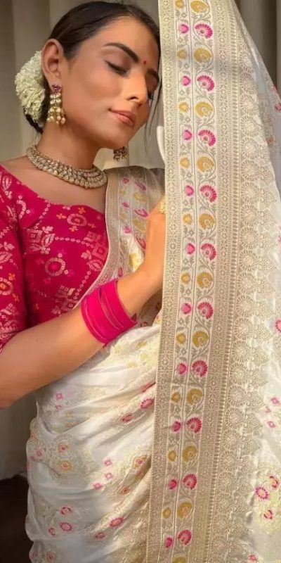 KP 5069 White Color Soft Lichi Silk Cloth Rich Pallu All Over Saree Events Casual, Wedding, Festive, Events Etc. Expected Delivery  4-6 Working Days @1549/-