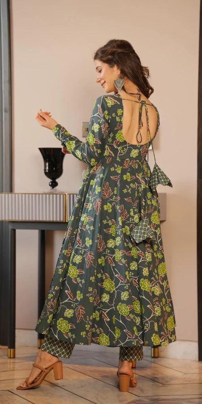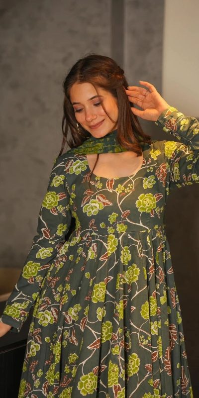 MF 434 Green Color Silk Satin Digital Printed Sleeves Gown Casual, Party, Wedding, Festive, Events Etc.  Expected Delivery  4-6 Working Days @1899/- Only
