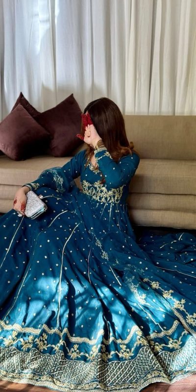 VLM 272 Rama Blue Color Star Georgette Embroidery Work Gown Casual, Wedding, Party, Festive, Events Etc. Expected Delivery 4-6 Working Days @2049/-