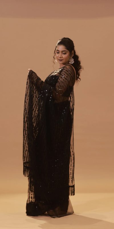 BT 352 Black Color Nylon Butterfly Net Sequence With Thread Work Saree Casual, Wedding, Festive, Events . Expected Delivery 4-6 Working Days @1699/- only