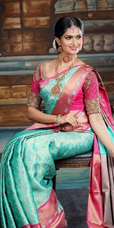 KP 4090 Firozi Color Soft Lichi Silk Jacquard On All Over Saree Casual, Party Wear, Wedding, Events Etc. Expected Delivery 4-6 Working Days @1499/-