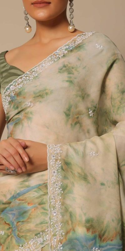 Fancy Light Pista Color Georgette Digital Printed Embroidery Saree