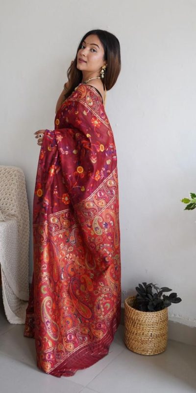 Fancy Maroon Color Kashmiri Running Thread Zari Work Saree