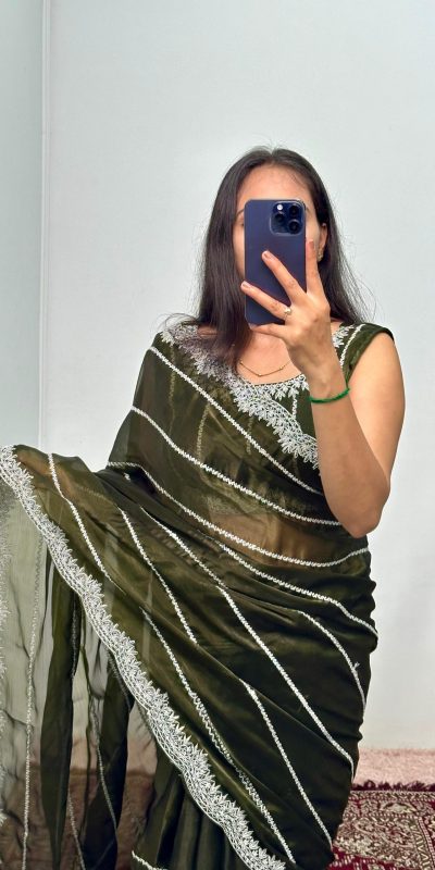 ST 476 Mehndi Color Burberry Blooming Embroidery Zari Saree Casual, Wedding, Party, Festive, Events Etc. Expected Delivery 4-6 Working Days @1899/-