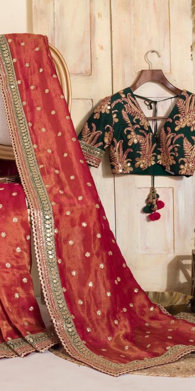 Fancy Red Color Twill Net Thread & Sequence work Saree